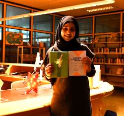 Diese vermutete Entspannung der Schülerinnen und Schüler zeigte sich nun in der beginnenden ersten Disziplin kaum, denn alle legten sich mächtig ins Zeug. Jetzt lasen die Klassenbesten aus ihrem selbst gewählten Buch vor. Erstaunlich gut vorbereitet stellten die Meisten ihre Romane zuerst inhaltlich vor und lasen anschließend ihre Textausschnitte vor. In der zweiten Disziplin mussten die Schülerinnen und Schüler im Bereich Lesetechnik und Interpretation alles geben, denn nun bekamen sie einen ihnen unbekannten Ausschnitt. Hierbei stach Marwa besonders hervor, denn sie las technisch sicher und interpretierte ihre gelesene Textstelle eindrucksvoll. Die Jury zog sich kurz zur Beratung zurück und war sich schnell einig, dass Marwa den Vorlesewettbewerb 2023 an unserer Schule gewonnen hatte.