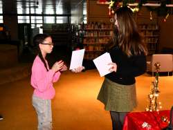 Unser Schulleiter Herr Weitz begrüßte die teilnehmenden Kinder, die Zuhörerinnen und Zuhörer und die Jury herzlich und stellte heraus, dass das Lesen mehr als das Ansehen von Filmen bedeute, denn die Bilder des Geschehens entstehen erst beim Lesen im Kopf des Einzelnen. Frau Mauer, Abteilungsleiterin der Abteilung I, ehrte hiernach die Klassensiegerinnen und -sieger der 6. Klassen und verteilte Urkunden und Schokoladennikoläuse. Das war eine schöne und wertschätzende Geste den Kindern gegenüber. Vermutlich konnten die Siegerinnen und Sieger dadurch ein bisschen entspannter in den Wettbewerb gehen, denn sie hatten ja bereits in der Vorauswahl gewonnen.