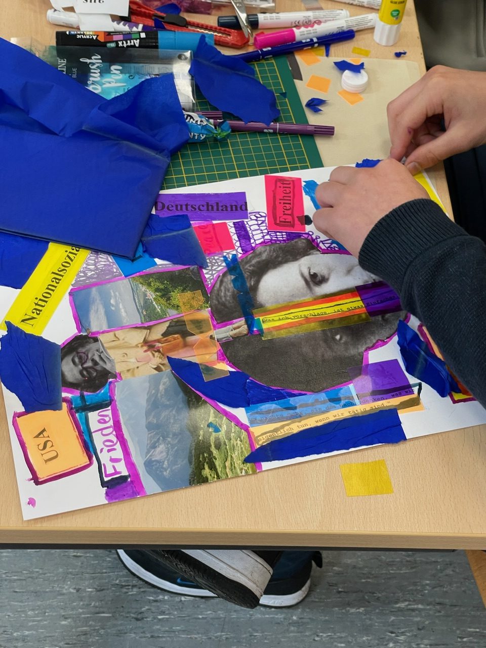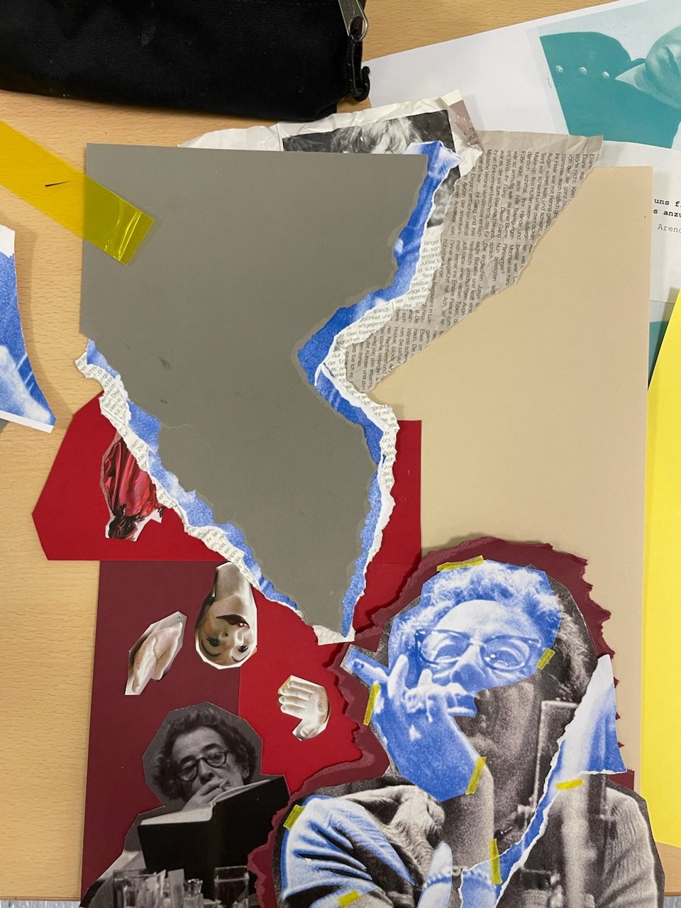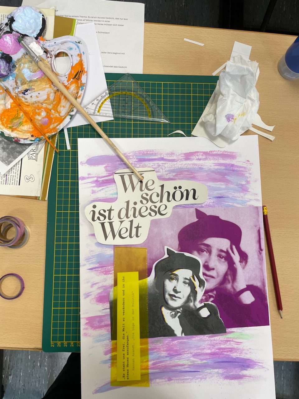 Nachfolgend ein Beispiel zu einem Schulprojekt zu dem Thema Hannah Arendt. Hier wurde zu den Themen Sexismus und Antisemitismus mit verschiedenen Collage-Techniken gearbeitet.